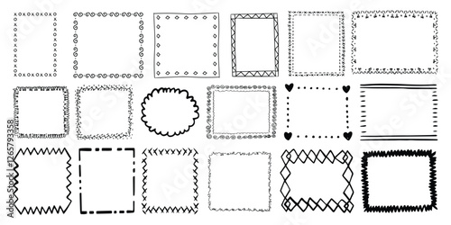 Fototapeta premium Rectangle frame line. square shape outline on hand draw style. vector...