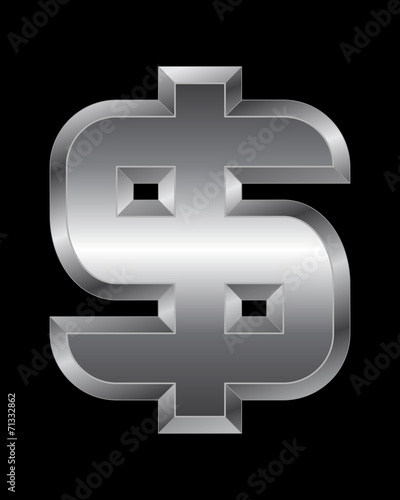 © visart, Fototapeta premium rectangular beveled metal font - dollar currency symbol