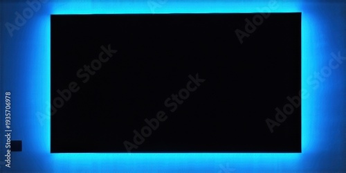 Fototapeta premium Rectangular black canvas surrounded by vibrant blue illumination. Dark background emphasizes glowing light source, modern aesthetic.