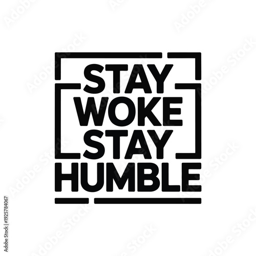 Obraz premium Rectangular graphic frames the uplifting phrase 'Stay Woke Stay Humble' in bold.