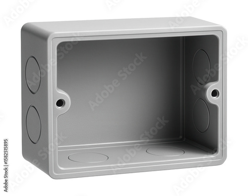 © primopiano, Obraz premium Rectangular installation box for wall outlets in an apartment, featuring knockouts for easy cable entry.