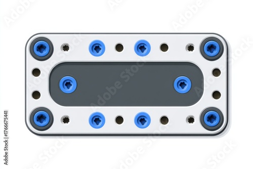Obraz premium Rectangular mechanical component with multiple screws and precise design angles