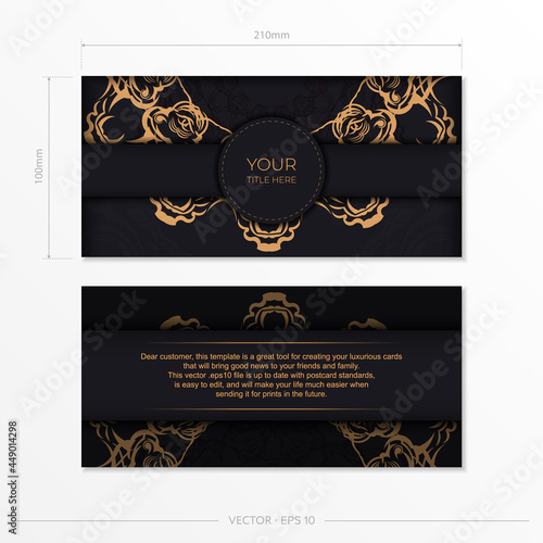 Fototapeta premium Rectangular Preparing postcards in black with luxurious gold ornaments....