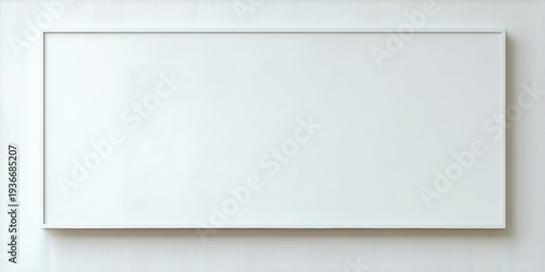 © antishock, Obraz premium Rectangular white frame hangs centered on light wall. Minimalist design, clean lines, simple presentation. Blank canvas offers potential.