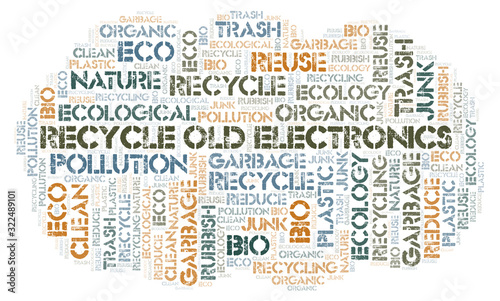© sharafmaksumov, Obraz premium Recycle Old Electronics word cloud.