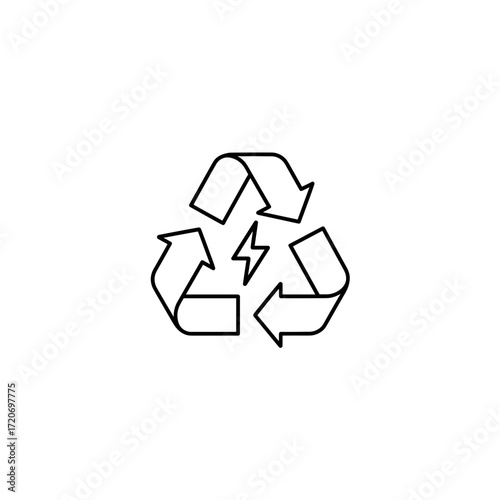 Obraz premium Recycle symbol with arrows and lightning in minimalist line design