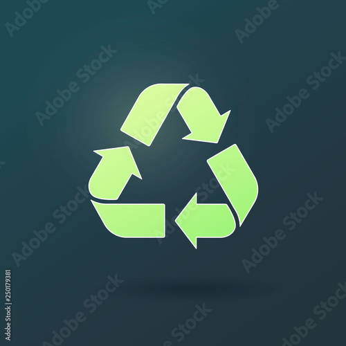 Fototapeta premium Recycle Vector icon. Trash symbol. Eco bio waste concept. Arrow 3d realistic design green illustration dark background.