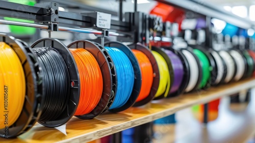 Obraz premium Recycled Material 3D Printing: An environmentally-friendly process where 3D printers work with recycled plastic filaments, reducing waste and supporting material reuse.