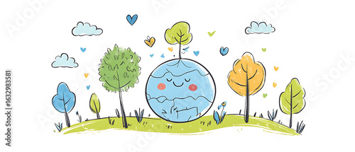 Naklejka premium recycling and nature themes: photos of trees sprouting from waste, Earth held...