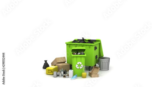 Obraz premium Recycling concept. 3D render. Garbage container. Enviroment polution. Trash....