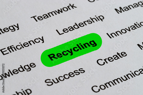 Obraz premium Recycling - Ethics Business Buzzwords, printed on white paper and hihglighted