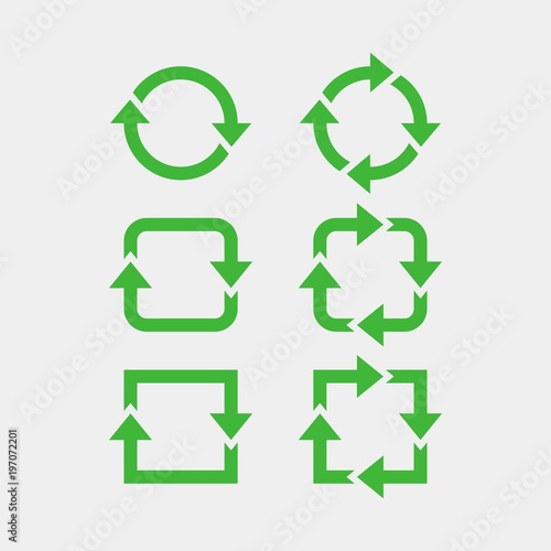 Obraz premium Recycling flat vector icons set. Arrows flat vector icons set