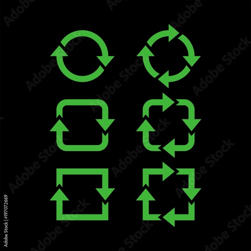 Obraz premium Recycling flat vector icons set. Arrows flat vector icons set