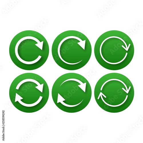 Obraz premium Recycling flat vector icons set. Arrows flat vector icons set