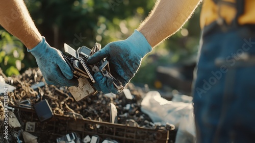 © nabila, Obraz premium Recycling Old Phones with Careful Handling Techniques