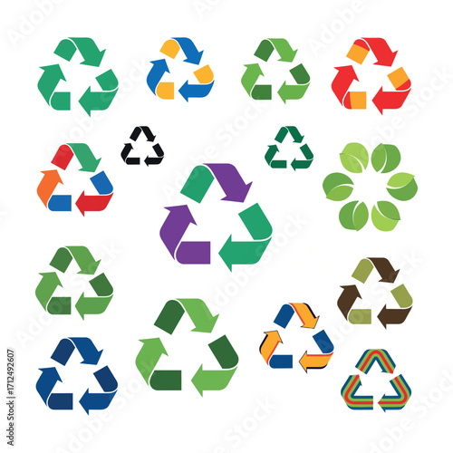 Obraz premium Recycling symbol variations icon sets vector illustrations