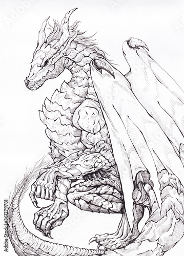 © Krot, Fototapeta premium ręcznie rysowane smok
