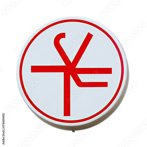 © Keisa, Fototapeta premium Red abstract symbol on round white sign isolated graphic element