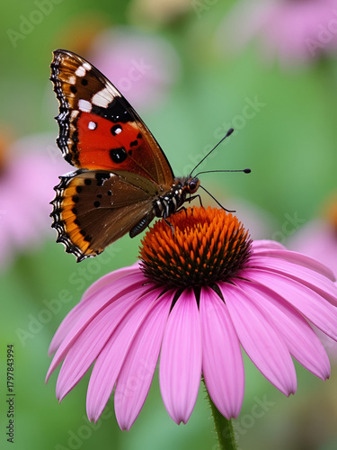 © Chad, Fototapeta premium Red Admiral butterfly on a coneflower