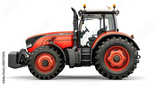 © pkproject, Obraz premium Red Agricultural Tractor in Rural Countryside Landscape
