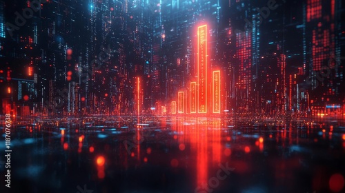 Fototapeta premium Red Alert: Futuristic Market Crash
