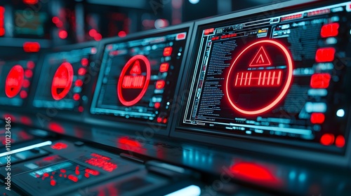 © นิศรา อ่วมเกิด, Obraz premium Red Alert System Cybersecurity Monitors