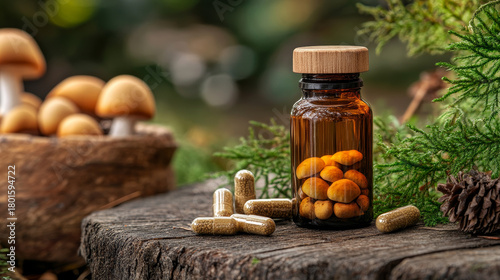 © Natalia Klenova, Naklejka premium Red Amanita Mushrooms in a Sunlit Autumn Forest