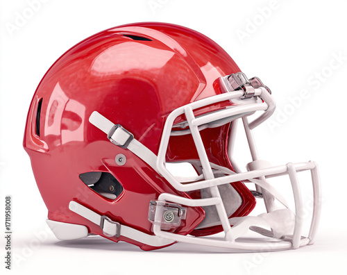 © PHOTO ROWSHAN ALI, Fototapeta premium Red american football helmet isolated on white background