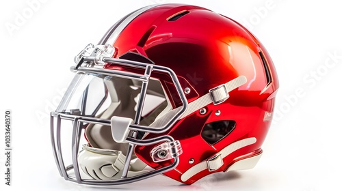 © Farid, Fototapeta premium red american football helmets isolated on white background.