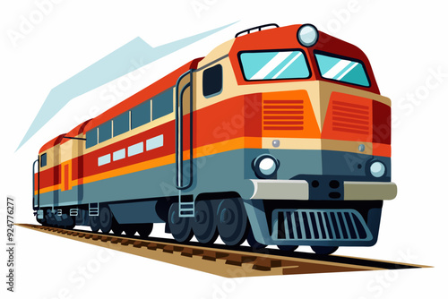 Naklejka premium Red and Beige Locomotive Train on Railway Tracks