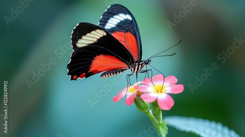 © Penatic Studio, Naklejka premium Red and Black Butterfly on Pink Flower