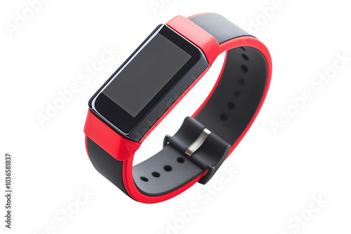 Fototapeta premium Red and black fitness tracker with a sleek design on white isolated...