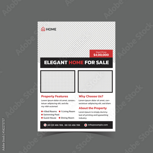 Naklejka premium Red and black flyer design, Professional home sale flyer design template, corporate real estate flyer design, Real Estate Agency Flyer Template Design