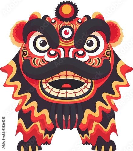 © Thi Le, Fototapeta premium Red and black lion dance costume
