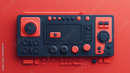 © BerkahStock, Fototapeta premium Red and black retro device with buttons and screen.