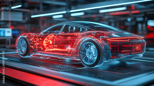 Obraz premium Red And Blue Digital Car Wireframe Model