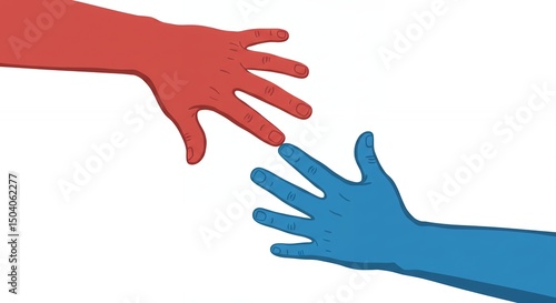 Obraz premium Red and Blue Hand Reaching
