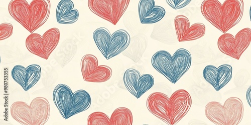 © Murda, Fototapeta premium Red and blue hearts on a white background.
