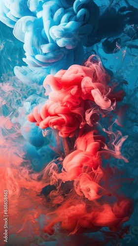 © GB, Fototapeta premium Red and blue ink clouds in water, abstract background