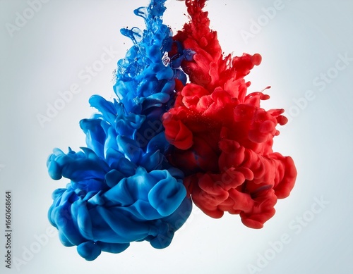© Ashley, Obraz premium red and blue ink drops colliding forming a pattern competition ink blot