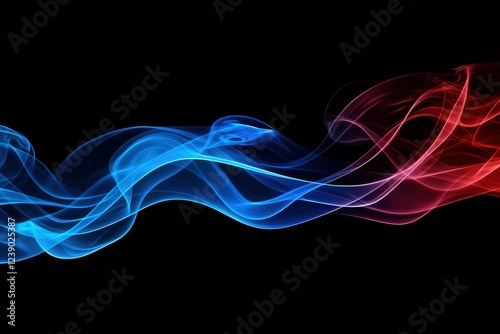 © Alexei, Naklejka premium Red and blue smoke effects displayed against a dark black background