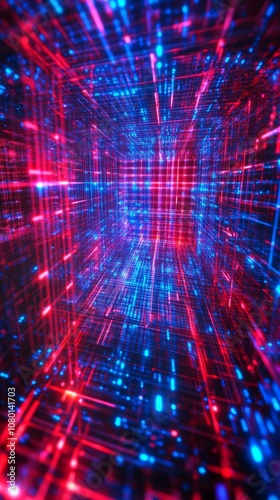 © tourinn, Obraz premium Red and Blue Techno Abstract Grid Cubes Background, 3D Background