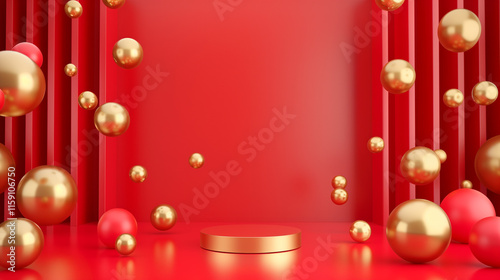 Fototapeta premium Red and Gold Abstract Podium with Spheres