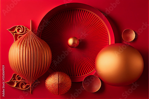 Fototapeta premium Red and Gold Background with room for Text. Generative ai