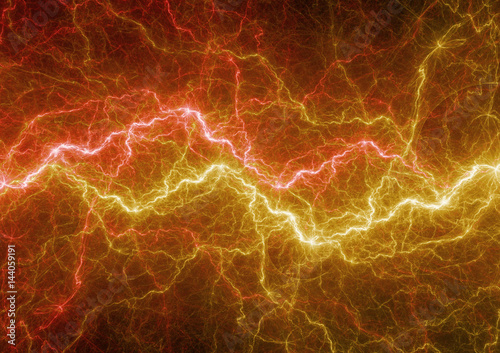 © Martin Capek, Fototapeta premium Red and gold electrical lightning, abstract power background