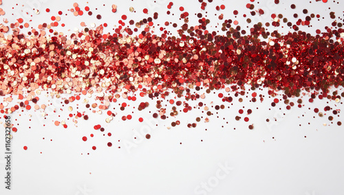 Obraz premium Red and gold glitter scattered on a white surface for festive decoration