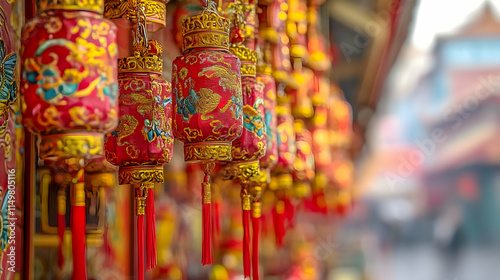 © KALEYA, Fototapeta premium Red and Gold Lanterns Illustration