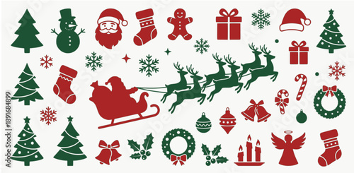 Fototapeta premium Red and Green Christmas Holiday Icons Set