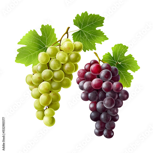 © Daniel, Obraz premium Red and green grape clusters with leaves isolated on transparent background. isolated white background