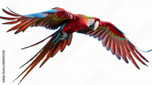 © atipong, Fototapeta premium Red and green macaw flying isolated on white background